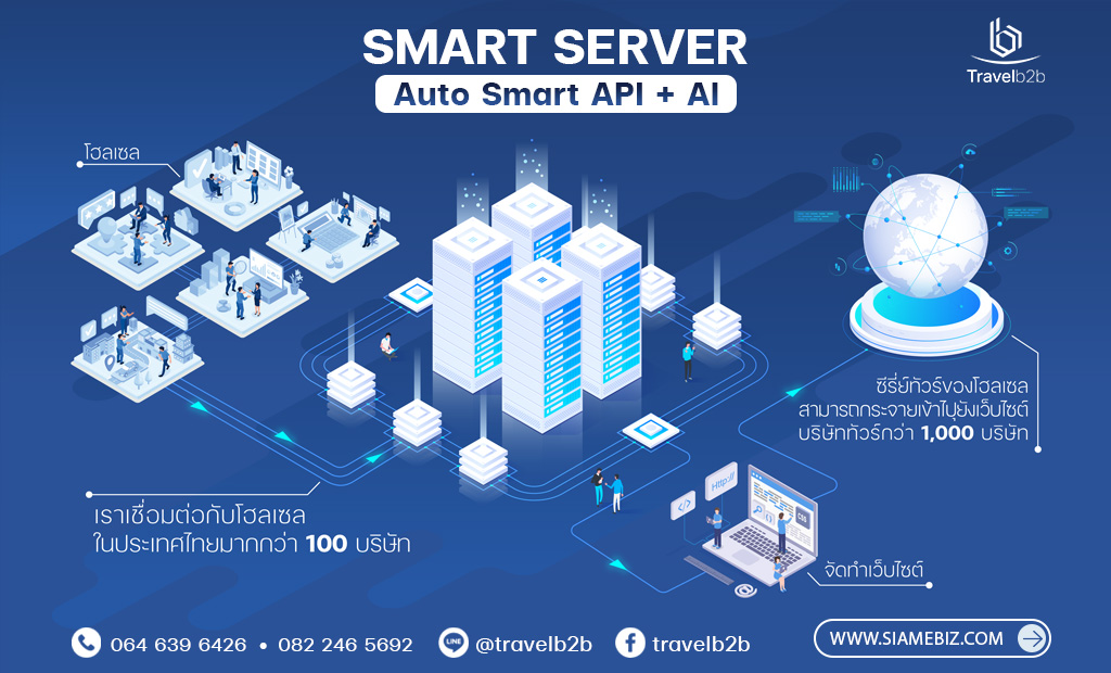 เราสามารถกระจายซีรีย์ทัวร์ของบริษัทโฮลเซล เข้าสู่เว็บไซต์ของบริษัททัวร์ ที่มาทำเว็บไซต์กับเรามากกว่า 1,000 บริษัท โดยข้อมูลซีรี่ย์ทัวร์จะถูกกระจายแบบ Auto Smart API + AI ซึ่งแต่ละบริษัททัวร์สามารถกระจายขายโปรแกรมทัวร์ที่อยู่ในเว็บไซต์ให้กับลูกค้าตัวเองได้เลย โดยแต่ละบริษัททัวร์ไม่จำเป็นต้องจ้างพนักงานเพิ่ม หรือมานั่งอัปเดตซีรี่ย์ทัวร์เข้าเว็บตัวเอง บริษัททัวร์สามารถเข้าไปเช็คซีรี่ย์ทัวร์ได้ในระบบหลังบ้านว่า แต่ละซีรี่ย์ทัวร์เป็นโปรแกรมของโฮลเซลเจ้าไหน และก็ส่งโฮลเซลเจ้านั้นได้เลย ระบบเราจะช่วยให้บริษัททัวร์ ขายทัวร์ได้ไว้มากกว่าคนอื่น เพิ่มยอดขาย ลดต้นทุน ลดการจ้างงาน และทำงานได้อย่างมืออาชีพ